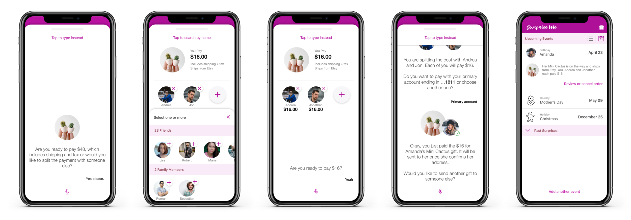 Our team came up with Surprise Me, which is a Microservice that banks can opt into. Once they decide to offer this Microservice, they will be able to make use of a gifting service that will change the way we gift, potentially globally. They are now able to tab into the huge amounts of retail data that is out there and provide their customers with a pleasant and easy to use gifting experience. It also benefits the environment. By offering such a great service to their users they will slowly start to gain their trust. This service also offers a simple checkout experience, split payments option and keeps conversational first in mind and offers a conversational commerce experience.