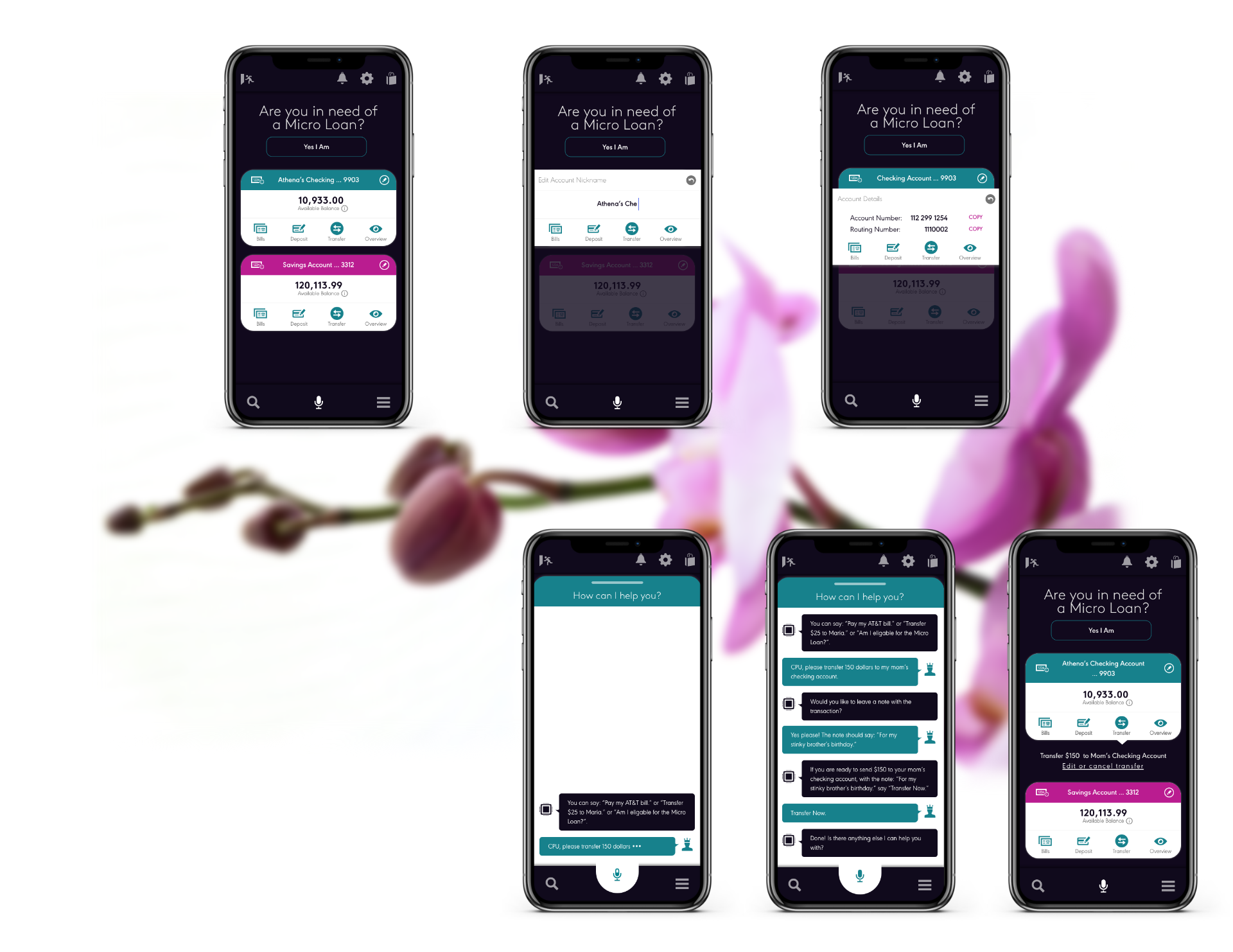 In my free time I sat down to see if I can find solution’s to our customer’s problems and I also want to integrate a chat/voice feature. My main goal was that the user gets to do accomplish all of their most repeated task, right from the home screen. I wanted to eliminate the time it takes for the user to search for the routing and account number for example, I included the functionality to copy the routing and account numbers, so the user can paste them into another mobile app or browser. With this design the user can accomplish a lot of tasks right in context without leaving the page. The app will preload the check amount to save the user even more time and after taking two pictures of the checks and two more clicks, the user is finished depositing their check.